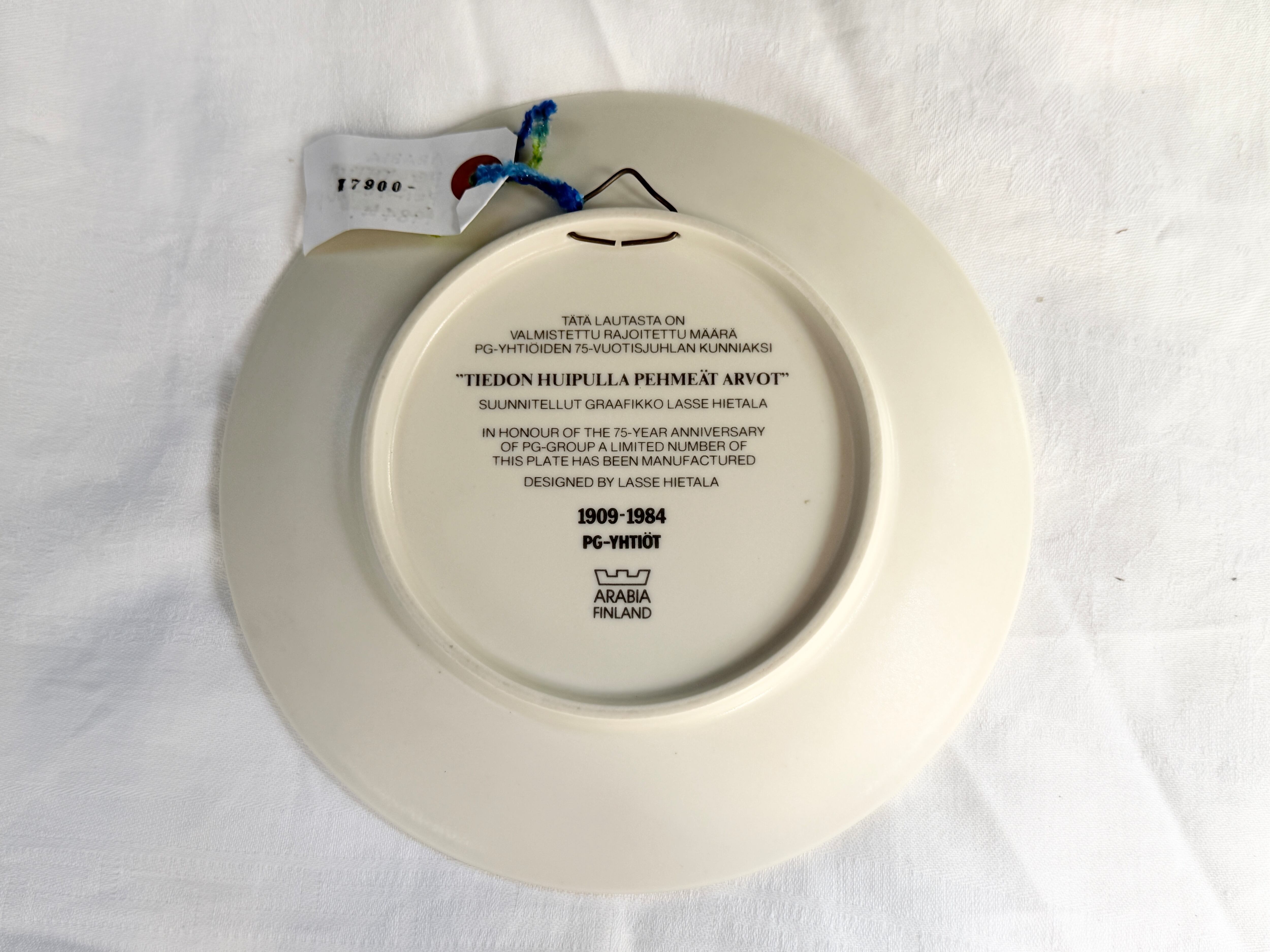 1984年にアラビアが製造した限定品の記念プレートです。希少品となります。